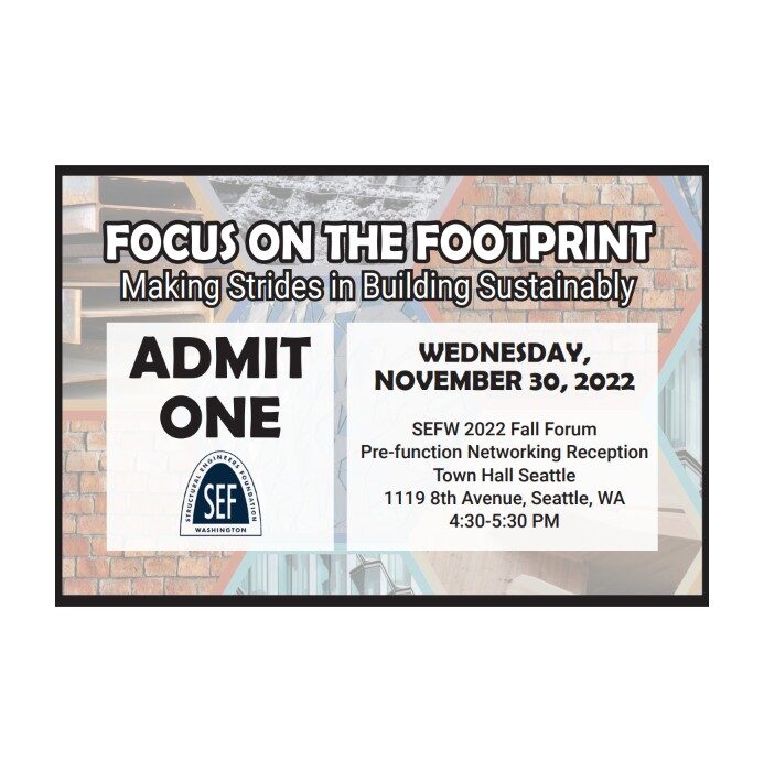 The Structural Engineers Foundation is thrilled to announce details for its 12th Annual Fall Forum, to be held on November 30 in person at Town Hall Seattle and live-streamed for your virtual viewing. โFocus on the Footprint: Making Strides in Building Sustainablyโ will address efforts to reduce and ultimately to eliminate embodied carbon in the built environment.ย